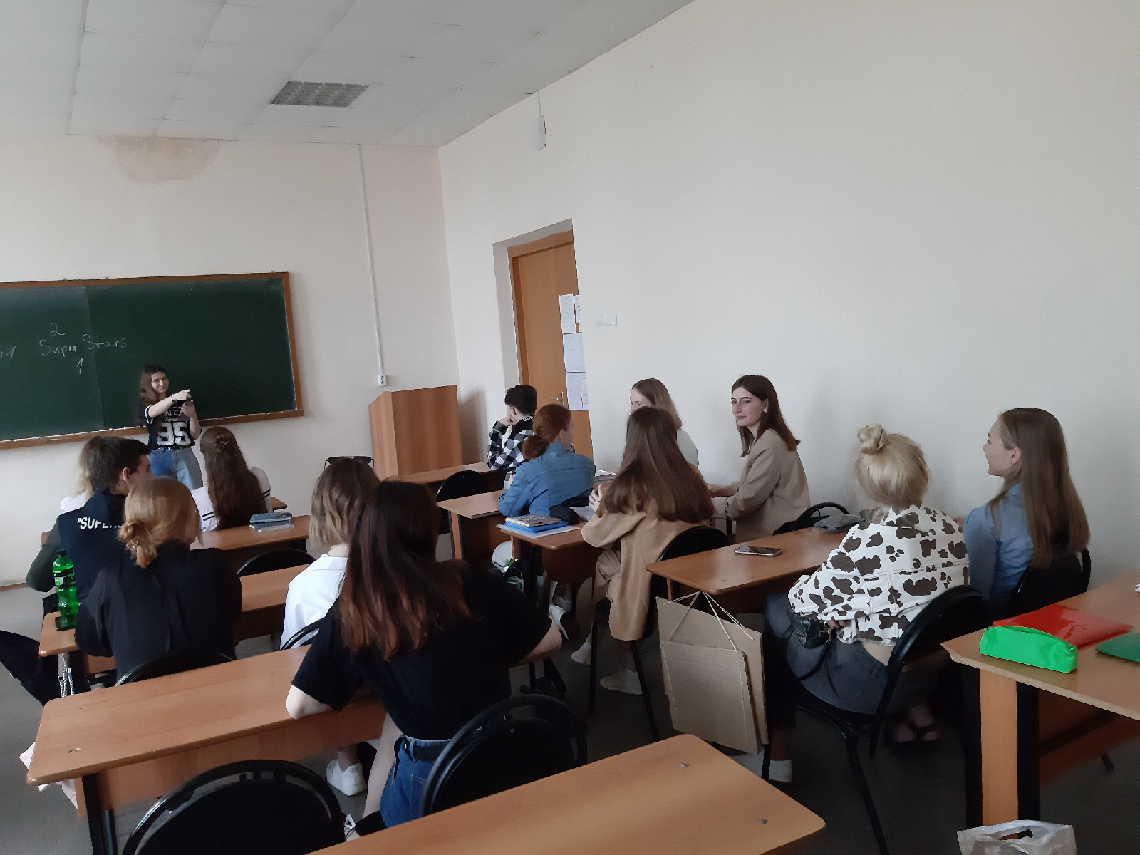 В ходе мероприятия студентка гр. 21 ФПР1 Светлана Русина представила ребятам отрывки известных музыкальных композиций на английском языке (прозвучало 32 мелодии). Студенты разделились на две группы, и каждой команде нужно было угадать название песни, исполнителя и напеть мелодию. За каждый правильный ответ команда получала по 1 очку. Прозвучали как современные композиции, так и ставшие классикой английской и американской культуры. Выяснилось, что студенты хорошо разбираются в музыке стран изучаемого языка. В свободное время ребята слушают песни, поют их, а поскольку песни на английском языке, то это, несомненно, способствует повышению интереса и мотивации к изучаемой дисциплине, ведь ребятам важно понимать смысл песен. Они переводят тексты песен, стараются правильно произносить слова и работают над фонетикой. Мероприятие было воспринято с интересом. Ребята отметили, что получили заряд положительных эмоций и расширили свой музыкальный кругозор.