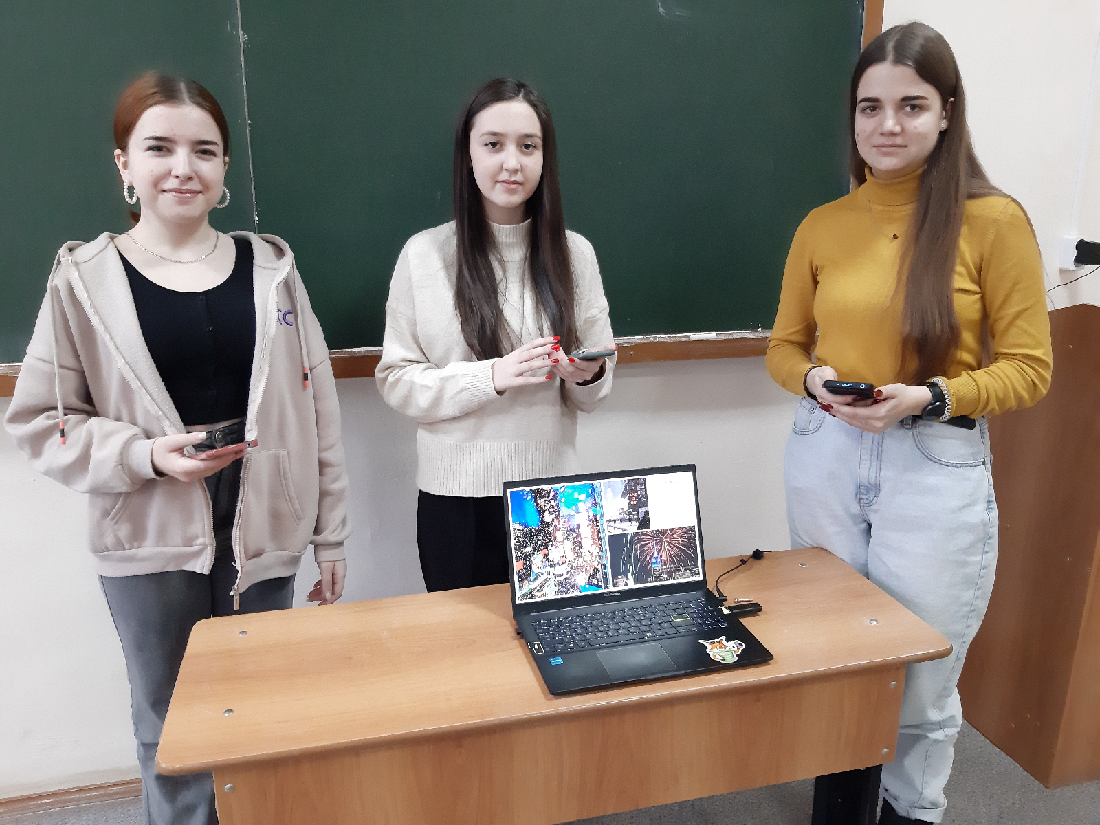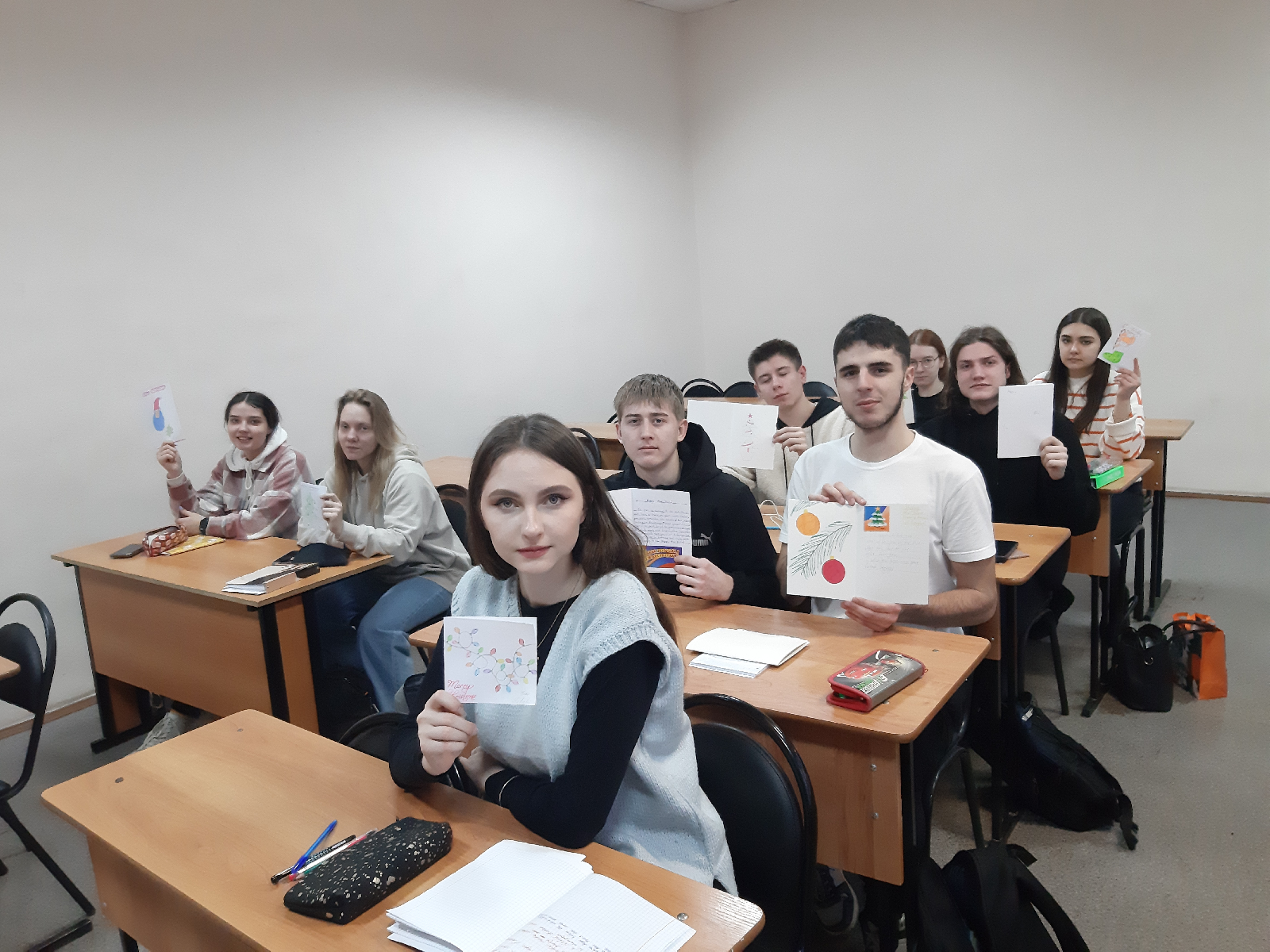 Созданию приятной атмосферы грядущих праздников внесли сделанные своими руками открытки, в которых студенты подписали друг другу пожелания в Новый год. Было отмечено, что эта традиция очень популярна в Великобритании. А ребята подписывали открытки впервые, ранее им не приходилось писать подобные пожелания. Мероприятие всем очень понравилось. Студенты подчеркнули, что оно способствовало сплочению группы, расширению лексического запаса английского языка, а самое главное созданию дружеской и теплой атмосферы и праздничного настроения.