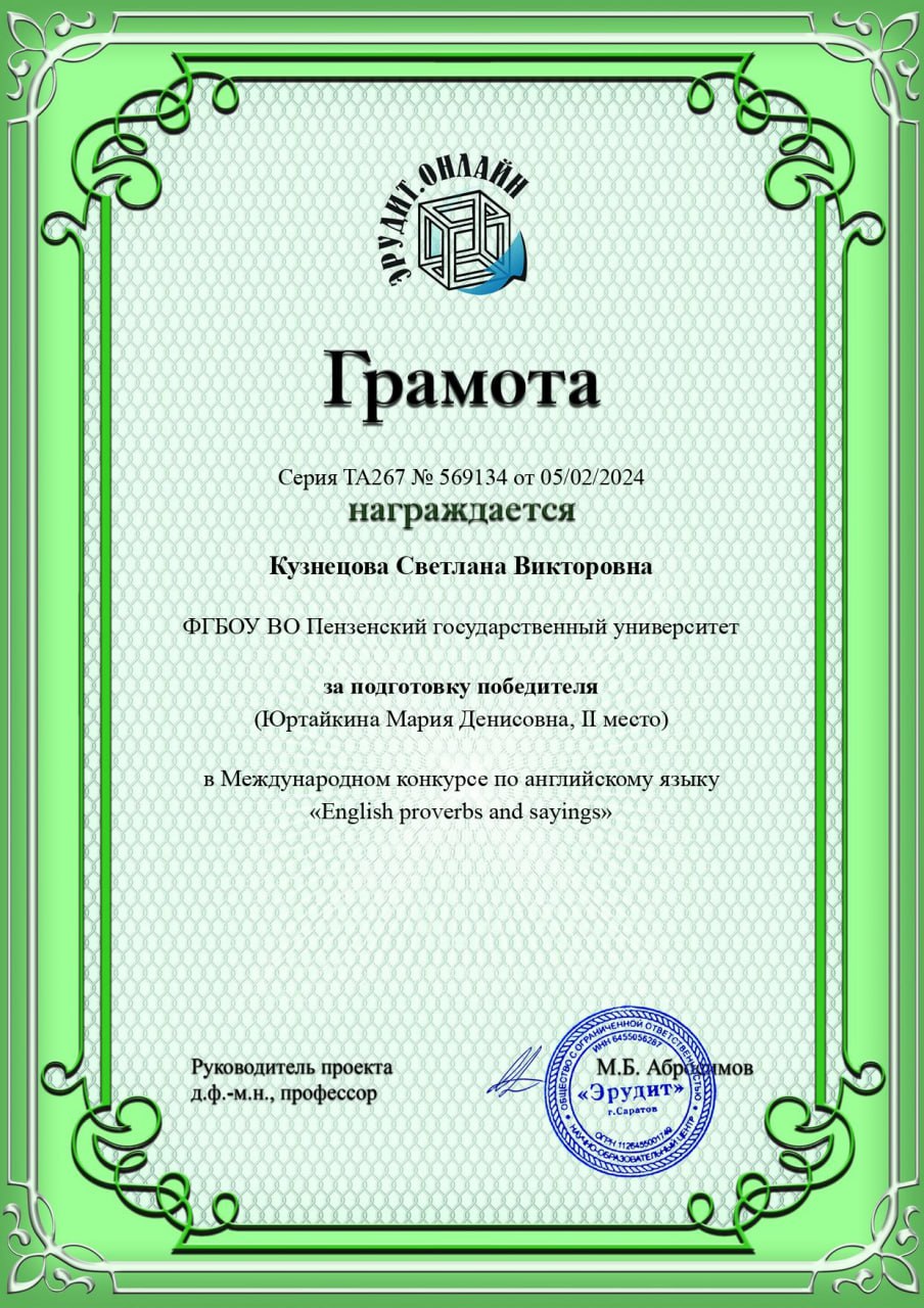 Поздравляем с победой в Международном конкурсе по английскому языку!