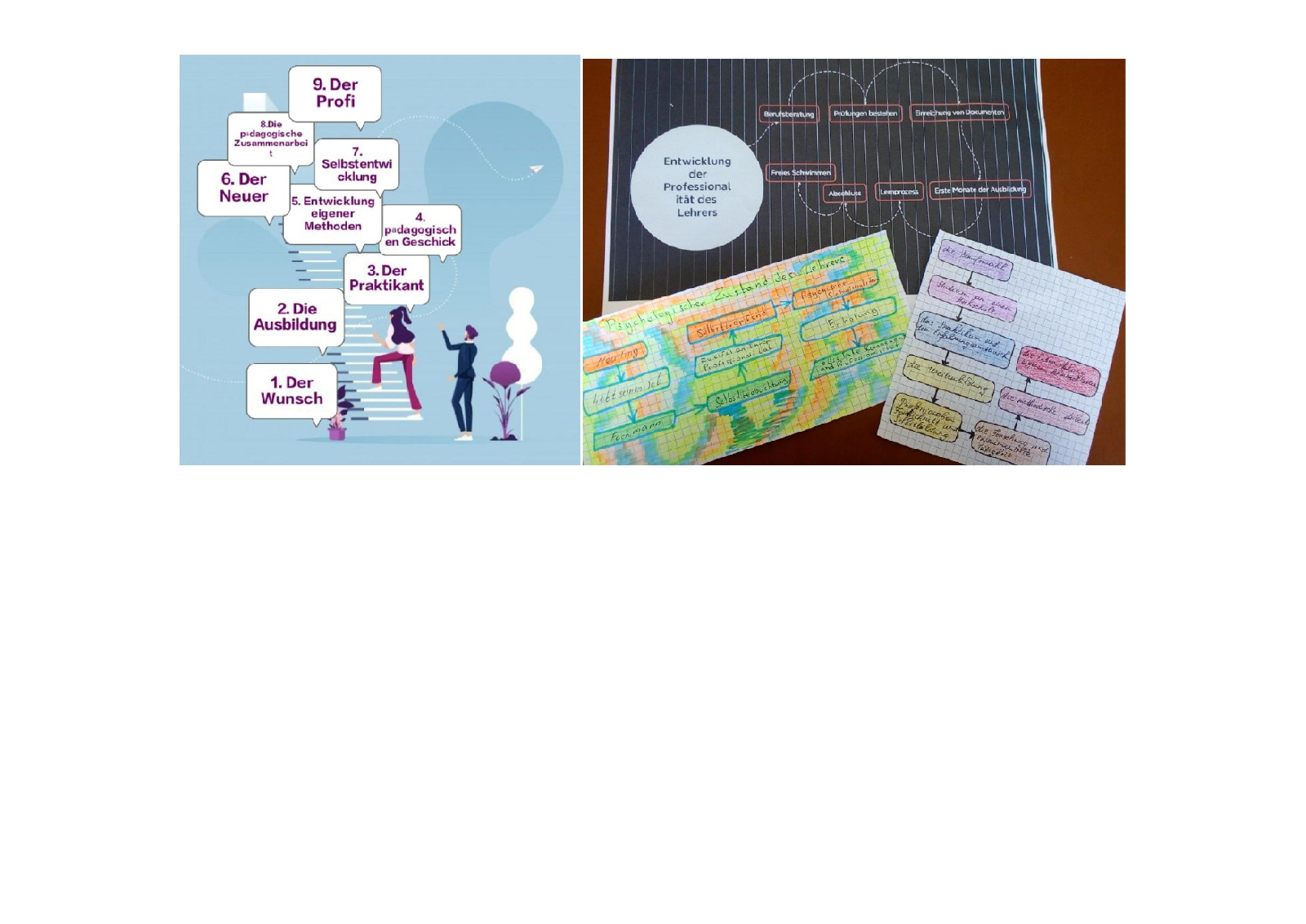 Вначале студентам была предложена готовая модель развития профессионализма педагога, которую они должны были объяснить. Она состояла из нескольких этапов: от этапа – практикант, далее педагог по призванию, от эрудиции к мастерству, этапы исследователь и новатор, педагогическое сотрудничество и заключительный этап – профессионализм. Студенты отметили, что все этапы в предложенной модели необходимы, но каждый этап должен сопровождаться обязательно самодиагностикой или самоанализом.