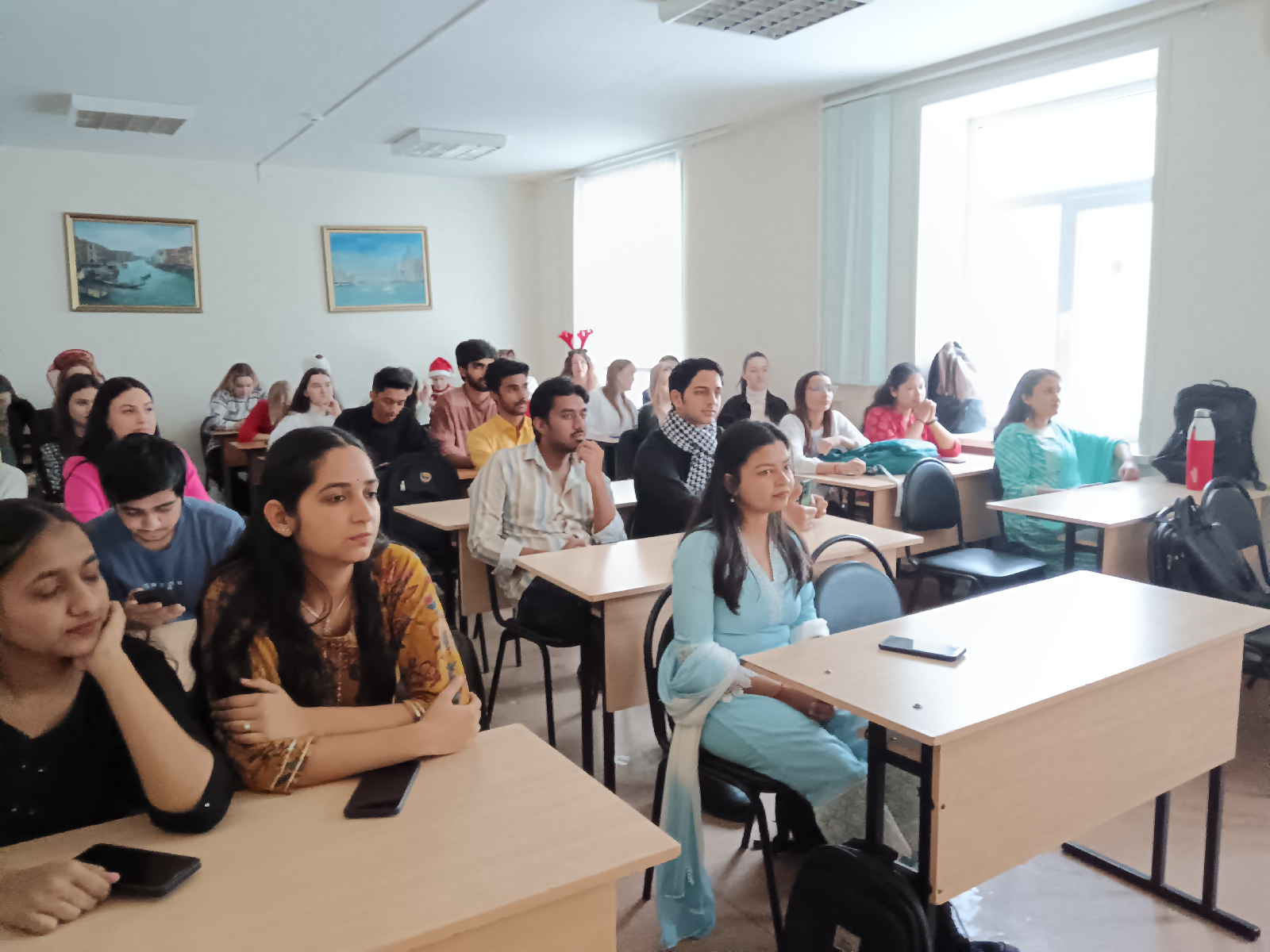 Как выяснилось, все праздники в Индии носят религиозный характер и празднуются в честь каких-либо божеств. Индийские студенты очень бережно относятся к своим традициям и знают их историю и значение. Вместе учащиеся выяснили, что у нас есть общая традиция в Новый год водить хороводы, также в Индии сохранилась традиция прыгать через костёр на праздник поклонения Солнцу. Об этом и многом другом студенты двух групп общались после представления своих презентаций.