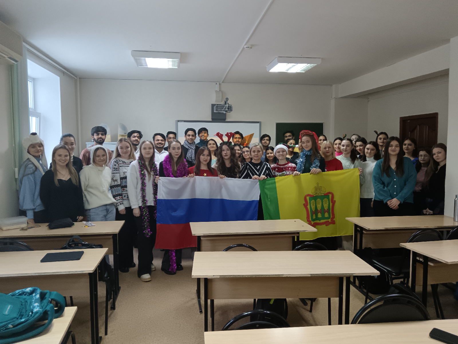 28.12.2024 доцент Т. В. Корнаухова провела воспитательное мероприятие на английском языке в формате круглого стола. Оно было посвящено традициям празднования новогодних праздников в разных странах. В мероприятии приняли участие студенты первых курсов Педагогического института им. В. Г. Белинского (ФППиСН, группа 24НЛ1) и Института международного сотрудничества (группа 24 ЛЛа10).