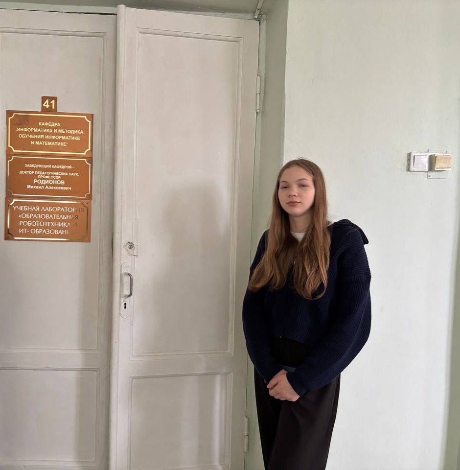26.03.2025 г. в рамках профориентационного мероприятия "Стань студентом ПГУ на один день" ПИ им. В. Г. Белинского, факультет физико-математических и естественных наук посетила учащаяся 2 курса ГАПОУ ПО ПКАС направления подготовки «Информационные системы и программирование» Баткаева Элиза. Для Элизы была проведена экскурсия по 13 корпусу, именно на этом факультете планирует после окончания колледжа обучаться девушка. Она хочет получить высшее образование в нашем вузе по направлению подготовки «Педагогическое образование» (информатика). Элиза посетила занятие доцента С.В. Кузнецовой с гр. 24 ФпР1 на 2 паре (13 корпус, ауд. 66). Кроме того, студенты группы рассказали о своей студенческой жизни на факультете, подчеркнув, что ФМиЕН — их любимый факультет, где все обучающиеся имеют возможность раскрыться в разных направлениях не только в обучении, но и мероприятиях, проводимых вузом. У Элизы остались только положительные впечатления от посещения университета.