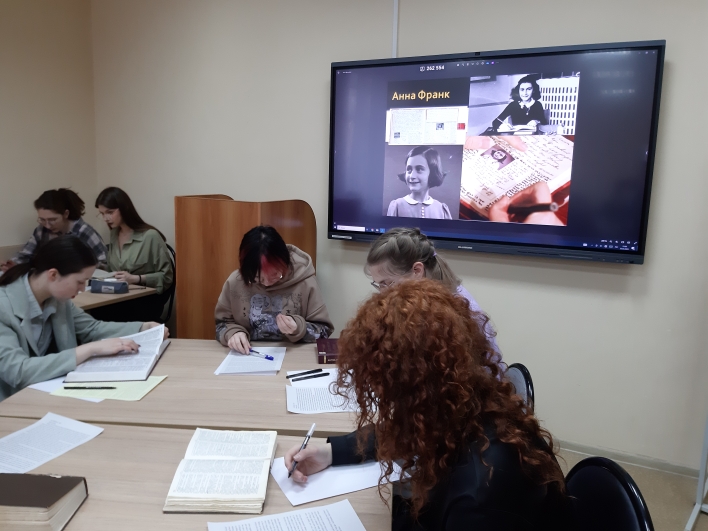 Дневник юной Анны Франк описывает ужасы войны и нелегкую судьбу людей в годы Второй мировой войны. Прежде чем приступить к художественному переводу, студентам была представлена информация об авторе данной книги, ее краткое содержание. Для многих студентов предложенная книга была не знакома, они отметили, что необходимо ее прочитать. Работы будут оценены и названы победители.